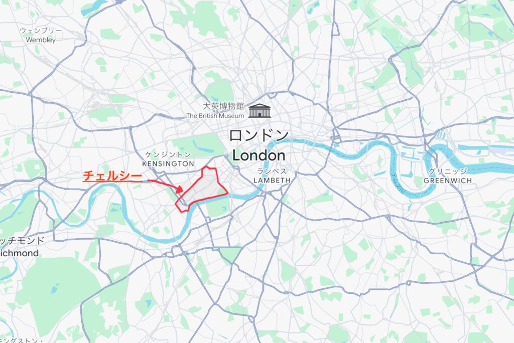 このチェルシーとは、古英語で「石灰が採れる土地」という意味であり、郊外にありそうな土地名に感じますが、実はチェルシー地区はロンドンでも有数の高級住宅地であり高級ブランドショップが立ち並ぶ富裕層の街となっています。